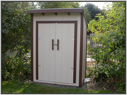 Storage Shed Objective: To create an efficient outdoor storage space that blends visually with its surroundings and creates a privacy barrier. Solution: A shed featuring barn-style doors which allow maximum access to interior storage was built in between large bushes to block off the back yard. The interior of the shed was custom fit with shelving and hooks, creating storage for all necessary items. By using leftover materials from a previous project, the client was able to lower costs.